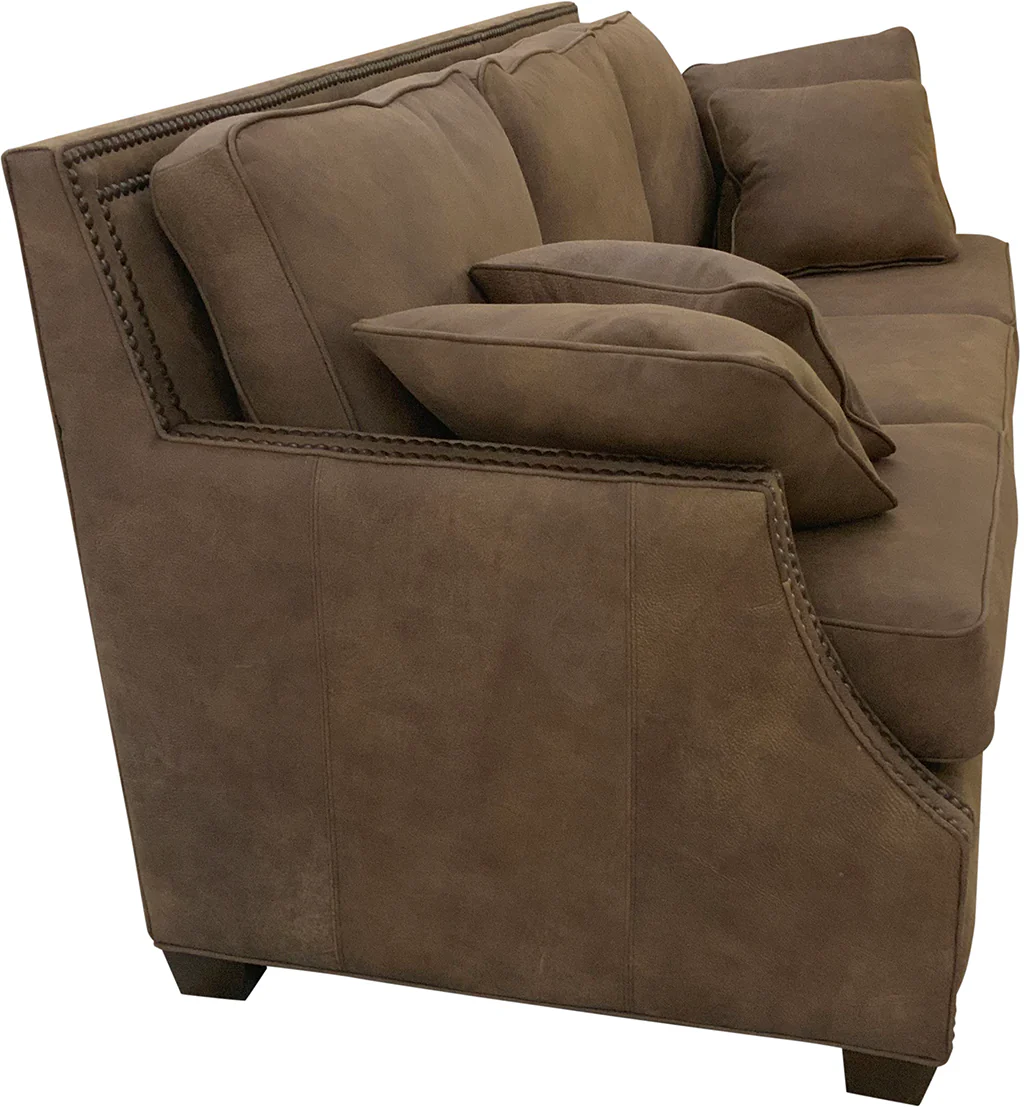 The Adrian leather sofa is custom made in our Lewisville, Texas, USA furniture factory for your furniture store.